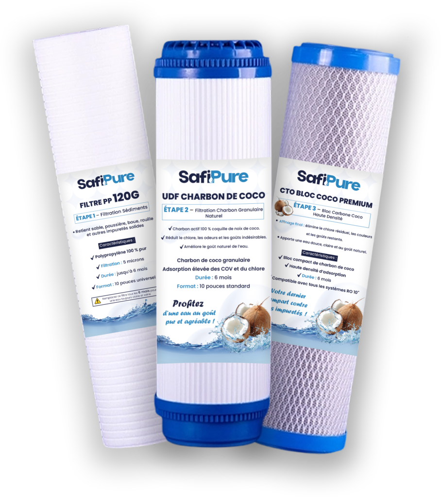 Sur notre site, les packs filtres sont classés par modèle (Open Case 80/100/150 GPD et Portable 100 GPD). Et l’application Safipure vous rappelle aussi quand et quoi changer.